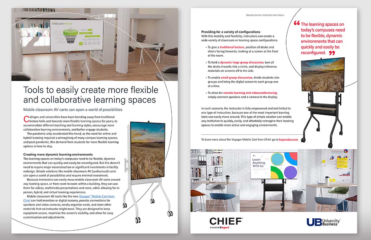 As both Art Director and Designer, I led the creation of a white paper for Chief by Legrand, utilizing insights from a University Business survey. Working closely with the project team, I transformed survey data into an engaging white paper. This white paper was integrated into a partner email marketing campaign, amplifying its reach and impact.
