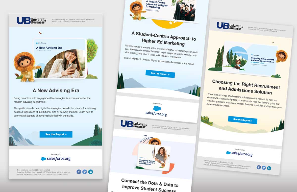 As both an Art Director and Email Designer, I led the design of a sponsored email campaign for Salesforce. Working closely with diverse teams, I designed visually compelling emails that conveyed Salesforce's messages effectively to our audience.