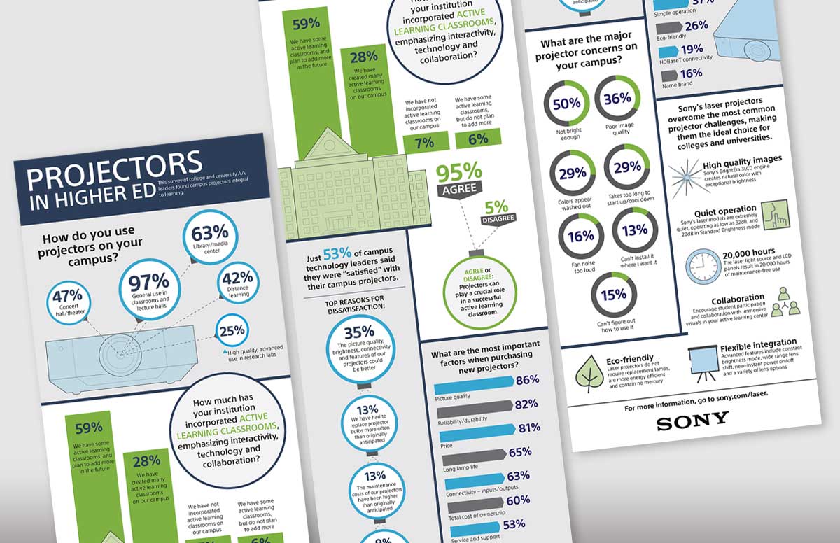 I designed a sponsored infographic for Sony, highlighting the use of projectors in higher education. Working with the content team, I transformed complex information into a visually appealing format, showcasing the benefits of Sony projectors for educational purposes.